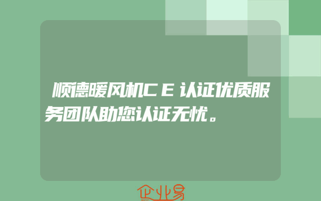 - 顺德暖风机CE认证优质服务团队助您认证无忧。