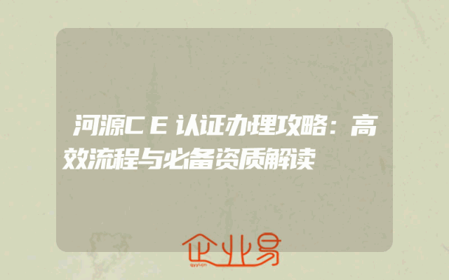 - 河源CE认证办理攻略:高效流程与必备资质解读