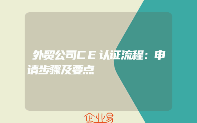 - 外贸公司CE认证流程解析:申请步骤及要点解析一、了解CE认证基本概念在国际贸易中,特别是在涉及欧洲市场的出口贸易中,产品的CE认证显得尤为重要。CE认证是欧洲市场针对产品安全与健康的一种强制性认证要求,它确保了产品在欧洲市场的合法流通与正常