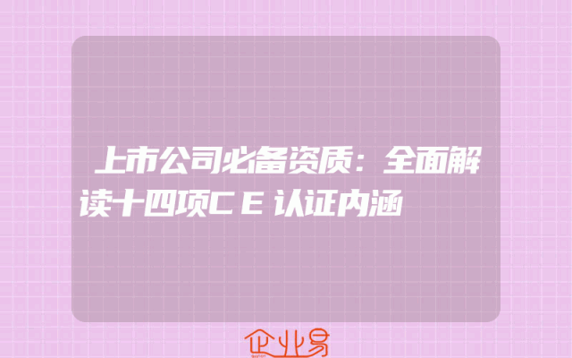 - 上市公司必备资质:全面解读十四项CE认证内涵