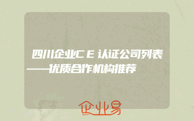 - 四川企业CE认证公司列表——优质合作机构推荐一、引言随着市场竞争的日益激烈,企业对于产品和服务的质量要求越来越高。在四川地区,许多企业为了提升自身竞争力,积极寻求CE认证,以确保产品符合欧洲市场的准入标准。本文将介绍四川地区一些提供CE认证