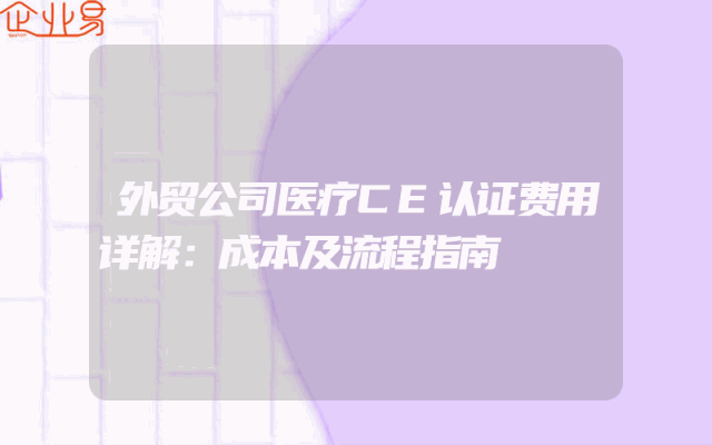 - 外贸公司医疗CE认证费用详解:成本及流程指南