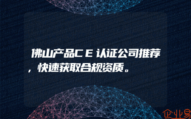 - 佛山产品CE认证公司推荐,快速获取合规资质。
