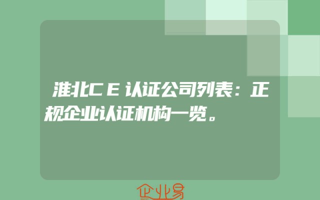- 淮北CE认证公司列表:正规企业认证机构一览。
