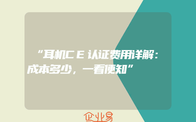 - “耳机CE认证费用详解:成本多少,一看便知”