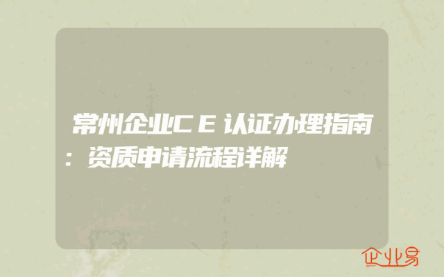 - 常州企业CE认证办理指南:资质申请流程详解