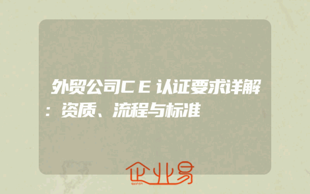 - 外贸公司CE认证要求详解:资质、流程与标准