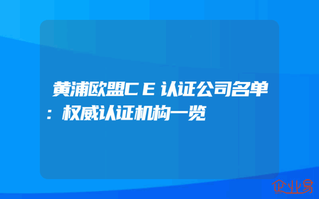 - 黄浦欧盟CE认证公司名单:权威认证机构一览