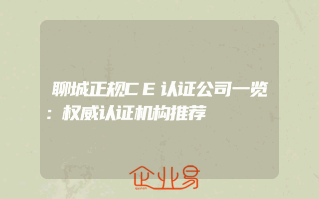 - 聊城正规CE认证公司一览:权威认证机构推荐
