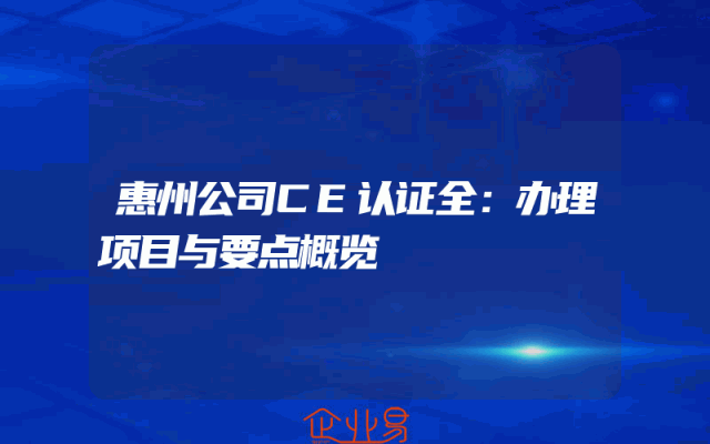 - 惠州公司CE认证全:办理项目与要点概览