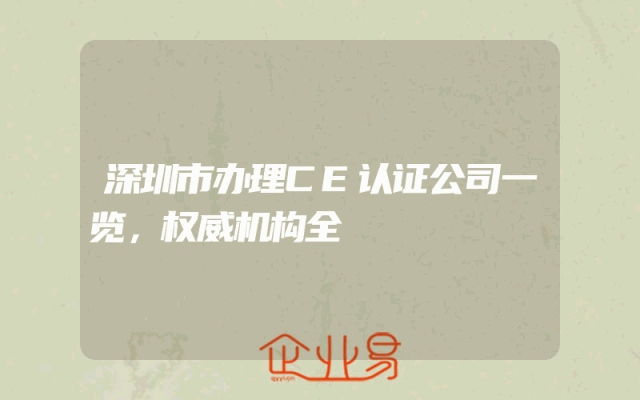 - 深圳市办理CE认证公司一览——权威机构全解析随着经济全球化进程的加快,企业的产品和服务逐渐走向世界。而对于想要进军欧洲市场的企业来说,CE认证无疑是产品进入欧洲市场的通行证。本文将为您详细介绍深圳市