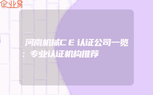 - 河南机械CE认证公司一览:专业认证机构推荐