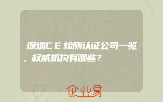 - 深圳CE检测认证公司一览,权威机构有哪些?