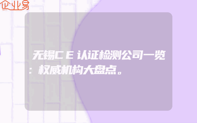 - 无锡CE认证检测公司一览:权威机构大盘点。