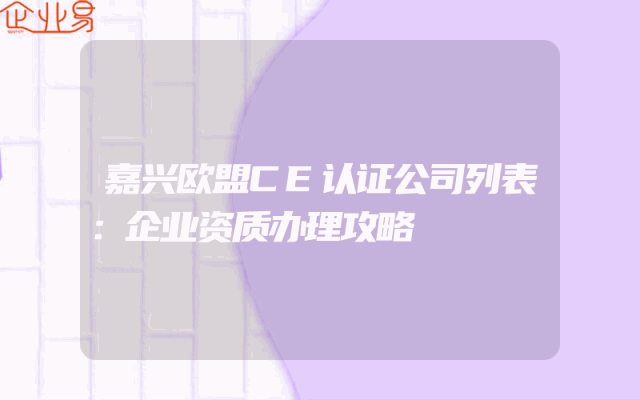 - 嘉兴欧盟CE认证公司列表:企业资质办理攻略