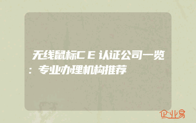 - 无线鼠标CE认证公司一览:专业办理机构推荐