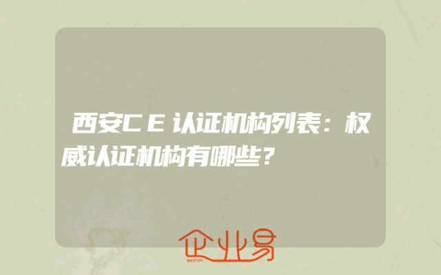 - 西安CE认证机构列表:权威认证机构有哪些?