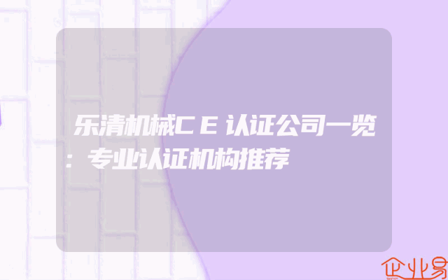 - 乐清机械CE认证公司一览:专业认证机构推荐