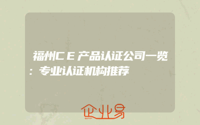 - 福州CE产品认证公司一览:专业认证机构推荐