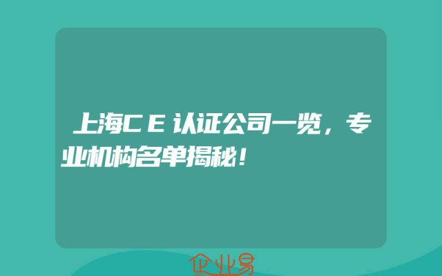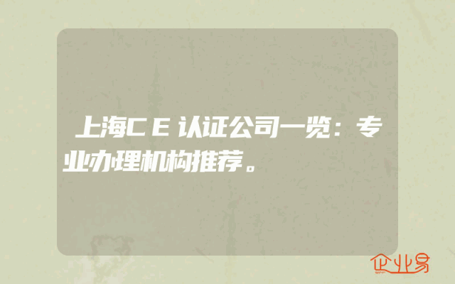 - 上海CE认证公司一览,专业机构名单揭秘!