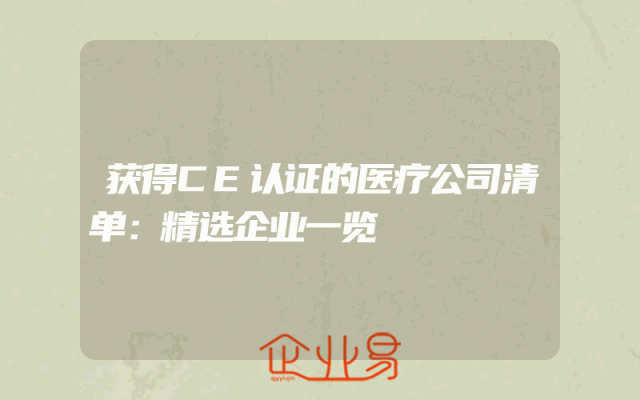 - 获得CE认证的医疗公司清单:精选企业一览