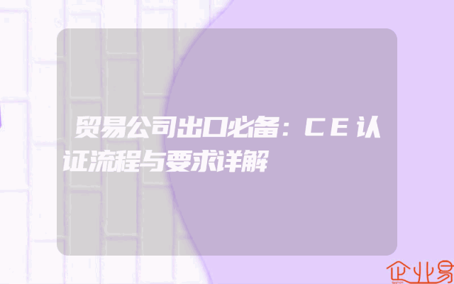 - 贸易公司出口必备:CE认证流程与要求详解