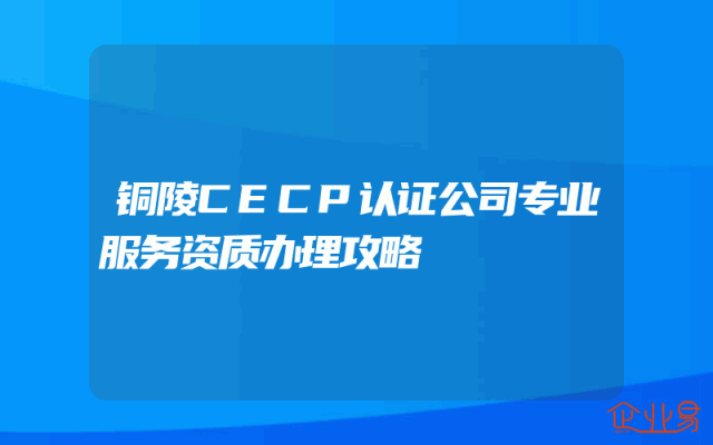 - 铜陵CECP认证公司专业服务资质办理攻略
