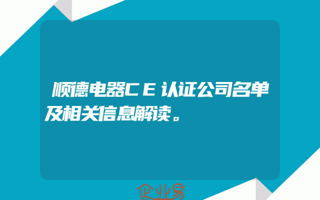 - 顺德电器CE认证公司名单及相关信息解读。