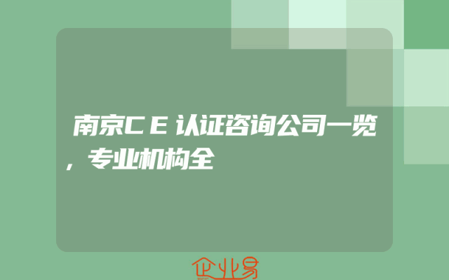 - 南京CE认证咨询公司一览,专业机构全