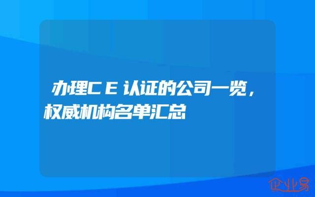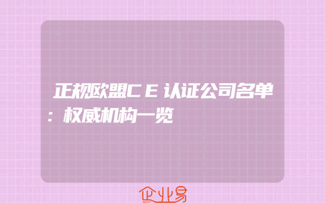 - 办理CE认证的公司一览及权威机构名单汇总一、CE认证简介CE认证,即欧洲共同体(CommunityEuropean)认证,是欧洲市场针对产品的强制性安全认证。要想产品顺利进入欧洲市场,就必须进行