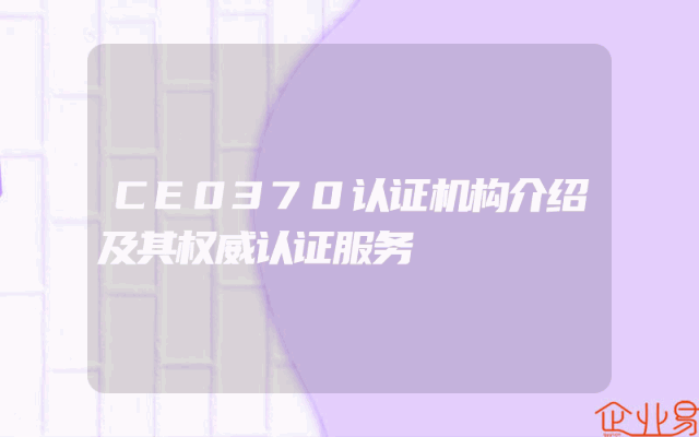 - CE0370认证机构介绍及其权威认证服务一、CE0370认证机构简介CE0370认证机构是一家专业从事各类企业资质审核与认证的权威机构。多年来,该机构凭借其严格的标准、专业的团队和高效的流程,在国内外赢得了广泛的声誉和信任。CE03