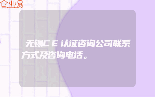- 无锡CE认证咨询公司联系方式及咨询电话随着国际贸易的发展,企业对产品质量的重视与日俱增。作为专业的企业服务行业从业者,我们知道企业在产品出口时往往需要满足国际认证标准,如CE认证。本文将详细介绍无锡地区一家专业的CE认证咨询公司的联