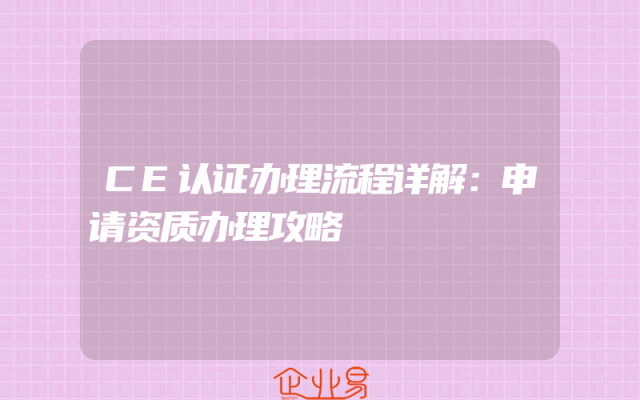 - CE认证办理流程详解:申请资质办理攻略一、了解CE认证概述在探讨CE认证的办理流程之前,首先需要对CE认证有一个大致的了解。CE认证是一种针对产品的安全和质量保障的认证,目的是证明产品符合欧洲市场的安全标准和法规要求。对于企业而言,取得CE
