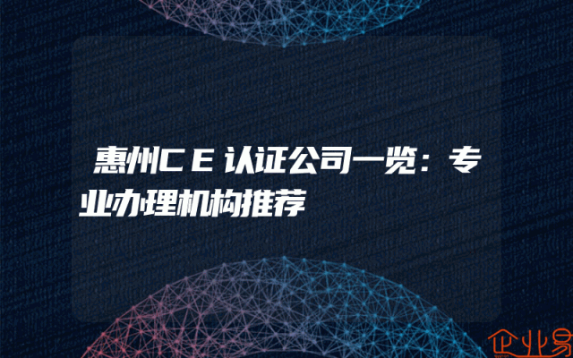 - 惠州CE认证公司一览:专业办理机构推荐一、引言在中国经济高速发展的今天,惠州作为制造业的重要基地之一,众多企业面临着产品出口欧盟市场的挑战。欧盟的CE认证是产品进入欧洲市场的通行证,因此选择一家专业的CE认证公司至关重要。本文将介绍