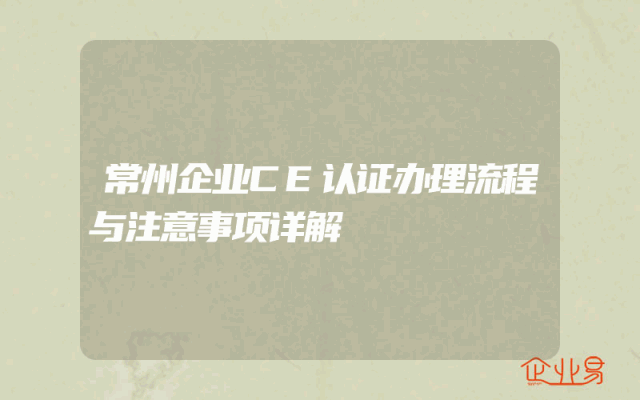 - 常州企业CE认证办理流程与注意事项详解一、CE认证简介CE认证(ConformitéEuropéenne)是一种欧洲市场的安全认证标志,适用于许多工业领域的产品。对于常州的企业而言,要想产品销往欧洲市场,获得CE认证是必不可少的环节。它不仅