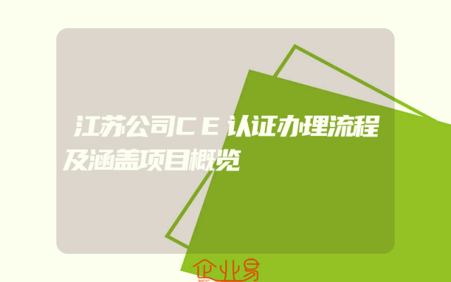 - 江苏公司CE认证办理流程及涵盖项目概览