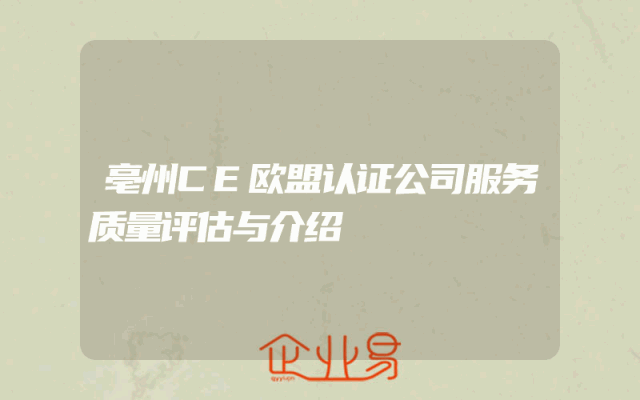 - 亳州CE欧盟认证公司服务质量评估与介绍