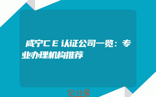 - 咸宁CE认证公司一览:专业办理机构推荐