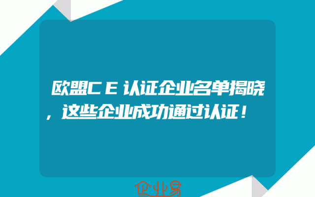 - 欧盟CE认证企业名单揭晓,这些企业成功通过认证!