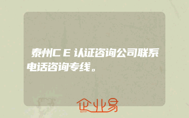- 泰州CE认证咨询公司联系电话咨询专线。