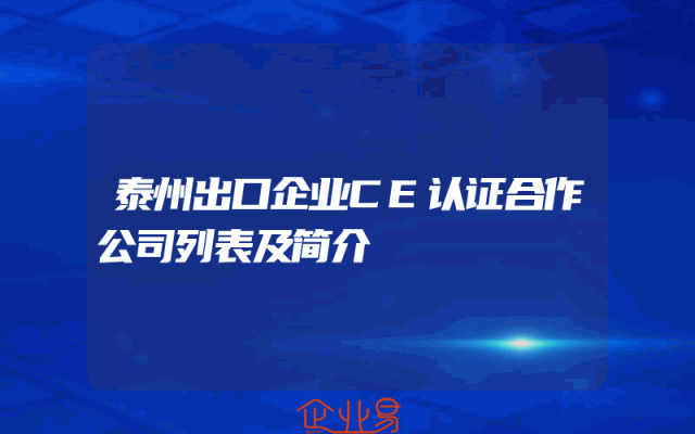 - 泰州出口企业CE认证合作公司列表及简介
