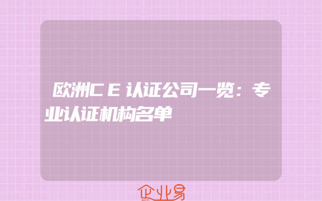 - 欧洲CE认证公司一览:专业认证机构名单