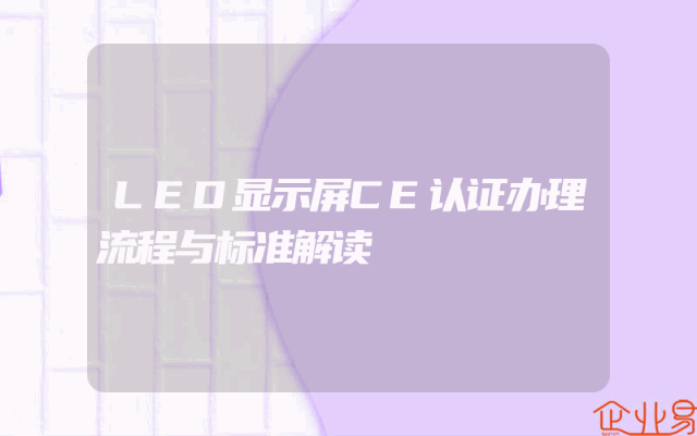 - LED显示屏CE认证办理流程与标准解读