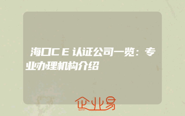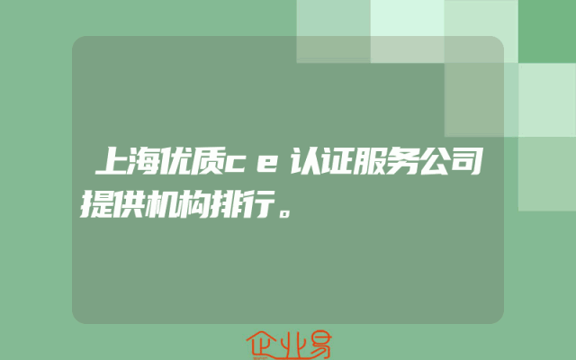 - 正规CE认证公司一览:权威认证机构推荐在现代企业服务领域,许多企业在产品和服务上都需要符合一系列国际标准的认证以保证质量和安全性。对于出口欧盟的企业来说,获得CE认证显得尤为重要。以下是正规CE认证公司一览及权威认证机构的推荐,以帮助您选择