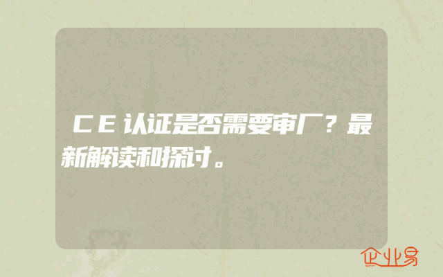 - CE认证是否需要审厂?最新解读和探讨什么是CE认证CE认证源于欧洲,旨在保障商品在市场上得以安全自由流通的法律认证要求。其主要涉及产品在欧洲的流通和使用,涵盖了电子产品、机械设备等多个领域的产品类型。越来越多的企业走向国际市场时,会