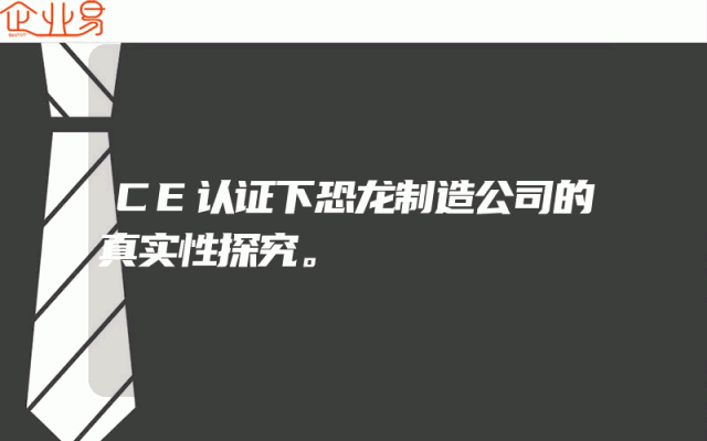 - CE认证下恐龙制造公司的真实性探究一、CE认证概述欧盟CE认证是一种强制性产品认证,旨在确保产品在投放市场前的安全性和合规性。这一认证对于企业和消费者而言都十分重要,它能够证明产品的合规性和制造商的质量承诺。对于恐龙制造公司而言,若