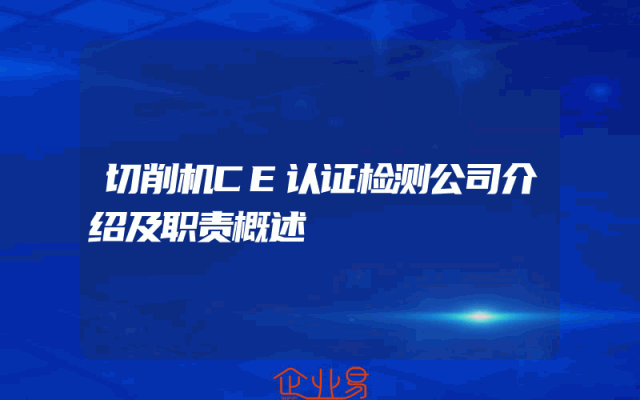 - 切削机CE认证检测公司介绍及职责概述一、切削机CE认证检测公司介绍随着工业技术的不断进步,切削机在制造业中的应用越来越广泛。为了保障产品质量和安全性,切削机CE认证检测公司应运而生。该公司专注于为各类切削机生产企业提供全面的检测服务,确保产