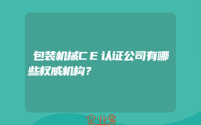 - 包装机械CE认证公司有哪些权威机构?