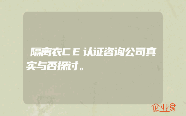 - 隔离衣CE认证咨询公司真实与否探讨。