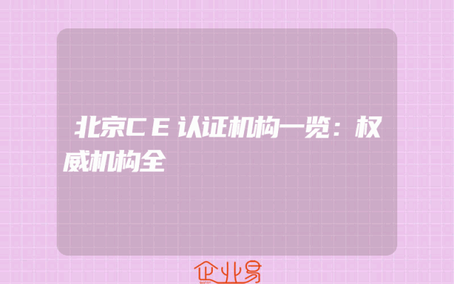 - 北京CE认证机构一览:权威机构全
